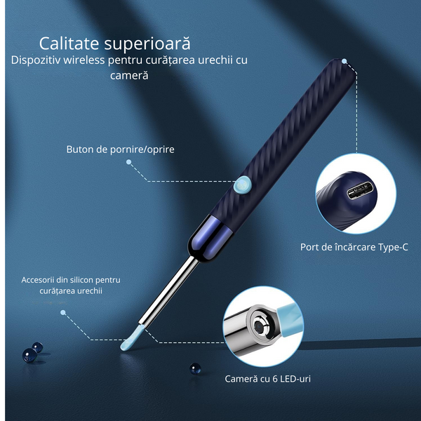 Acest kit revoluționează rutina de curățare a urechilor, oferindu-ți confort și claritate prin tehnologie avansată.